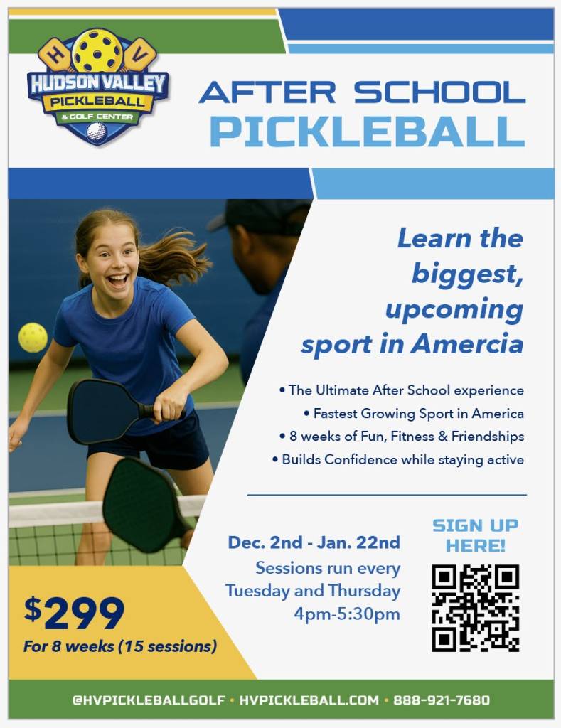 Hudson Valley / Poughkeepsie. Our 8-week program builds confidence, athletic coordination, and real game skills with upbeat, age-appropriate coaching and tons of play. Kids learn at their own pace in a supportive environment that’s active, social, and fun, with fundamentals like serves, dinks, footwork, and match strategy woven into every session. It’s the perfect after-school outlet to stay moving, make friends, and grow—whether they’re brand new or leveling up for team play.